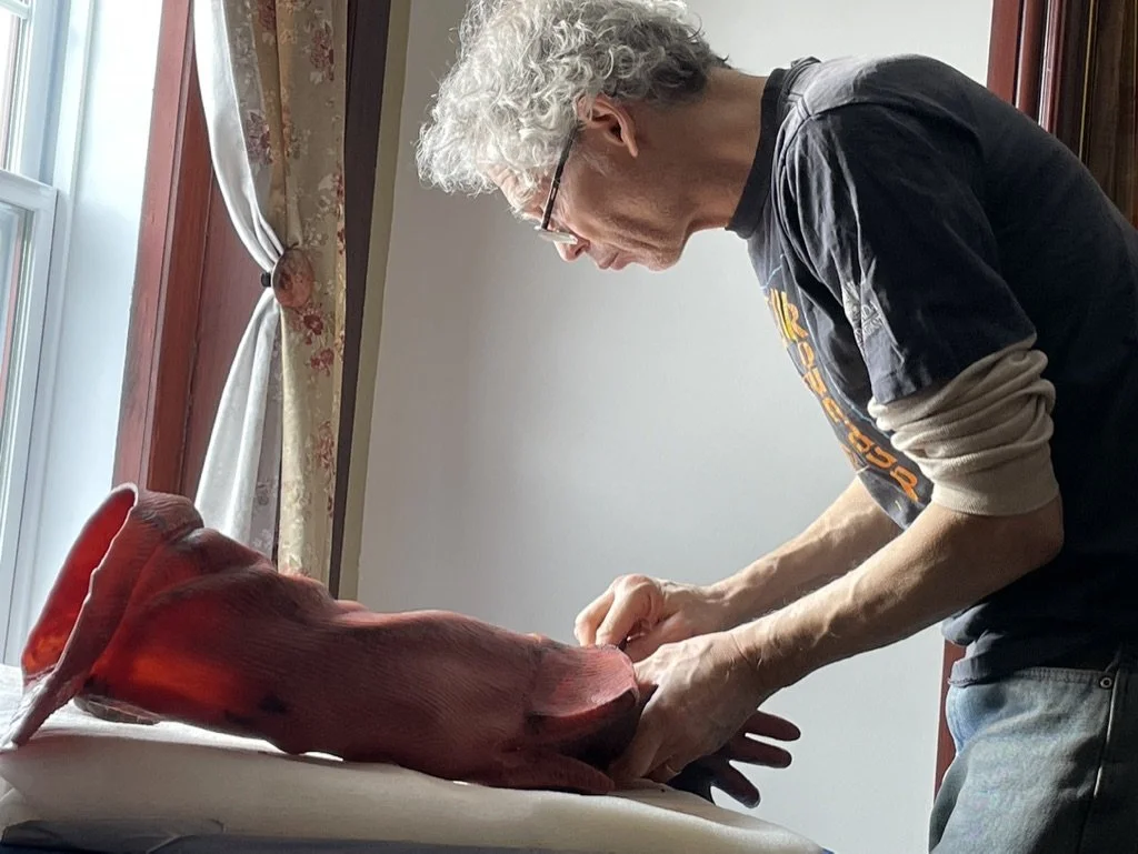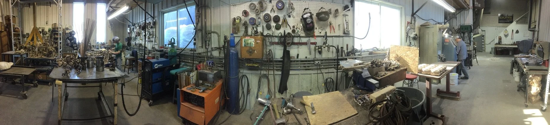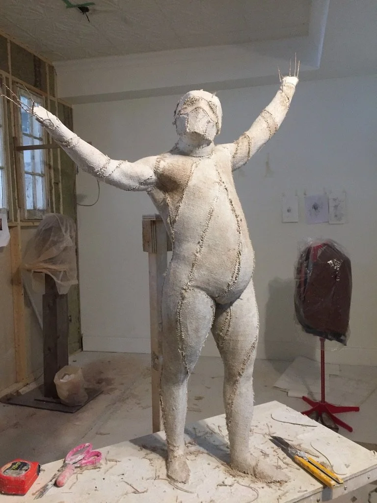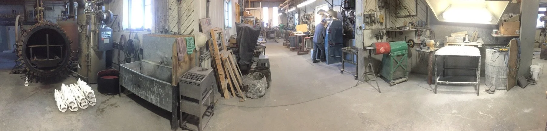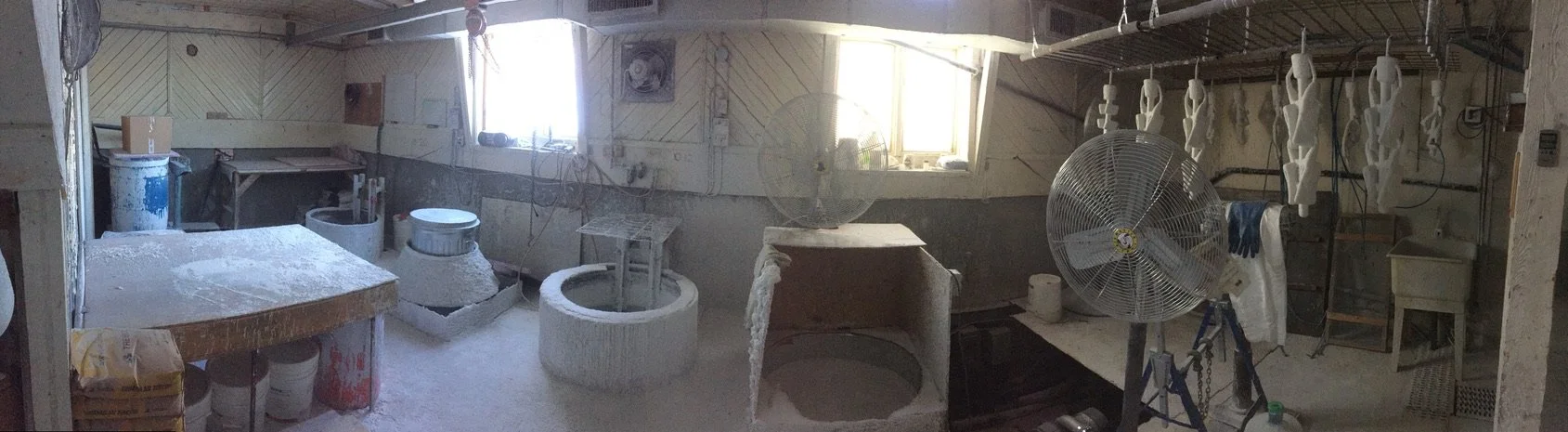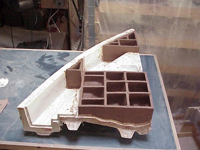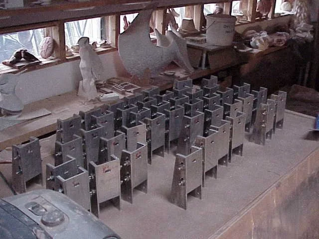 Sectioning plaster patterns for sand casting in bronze.
