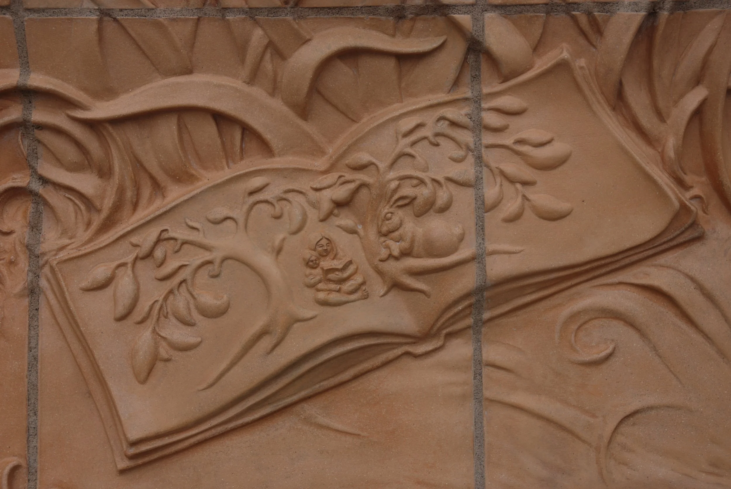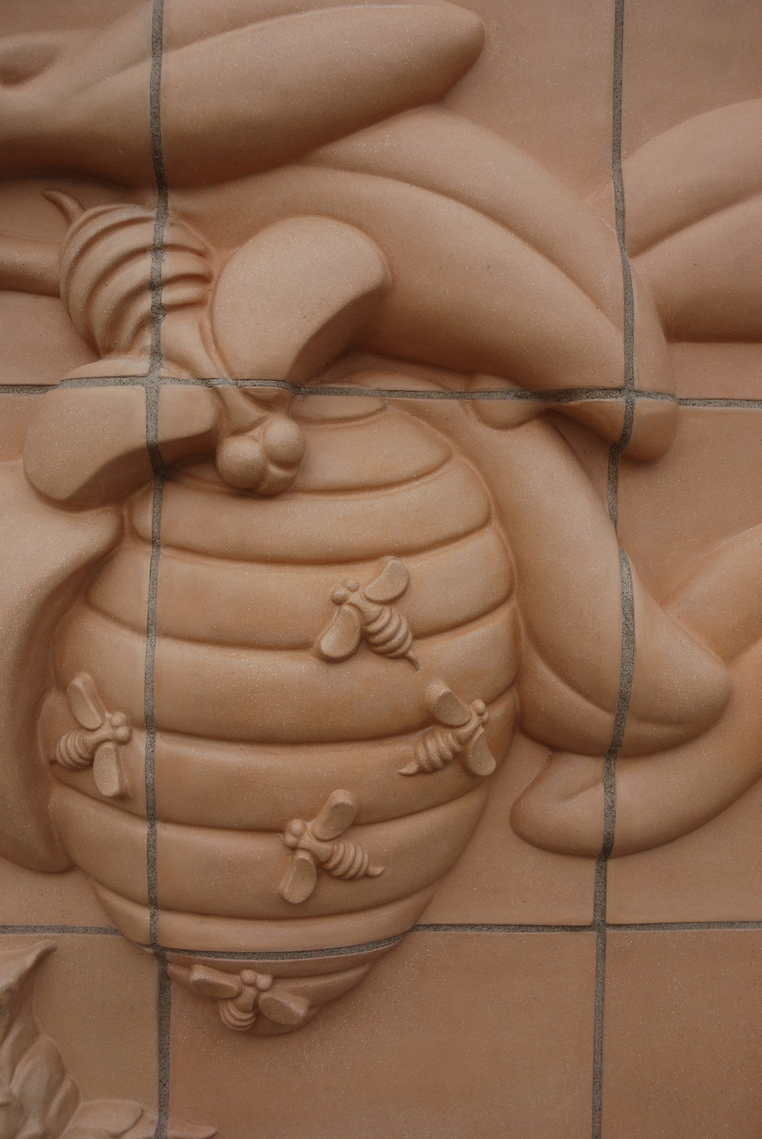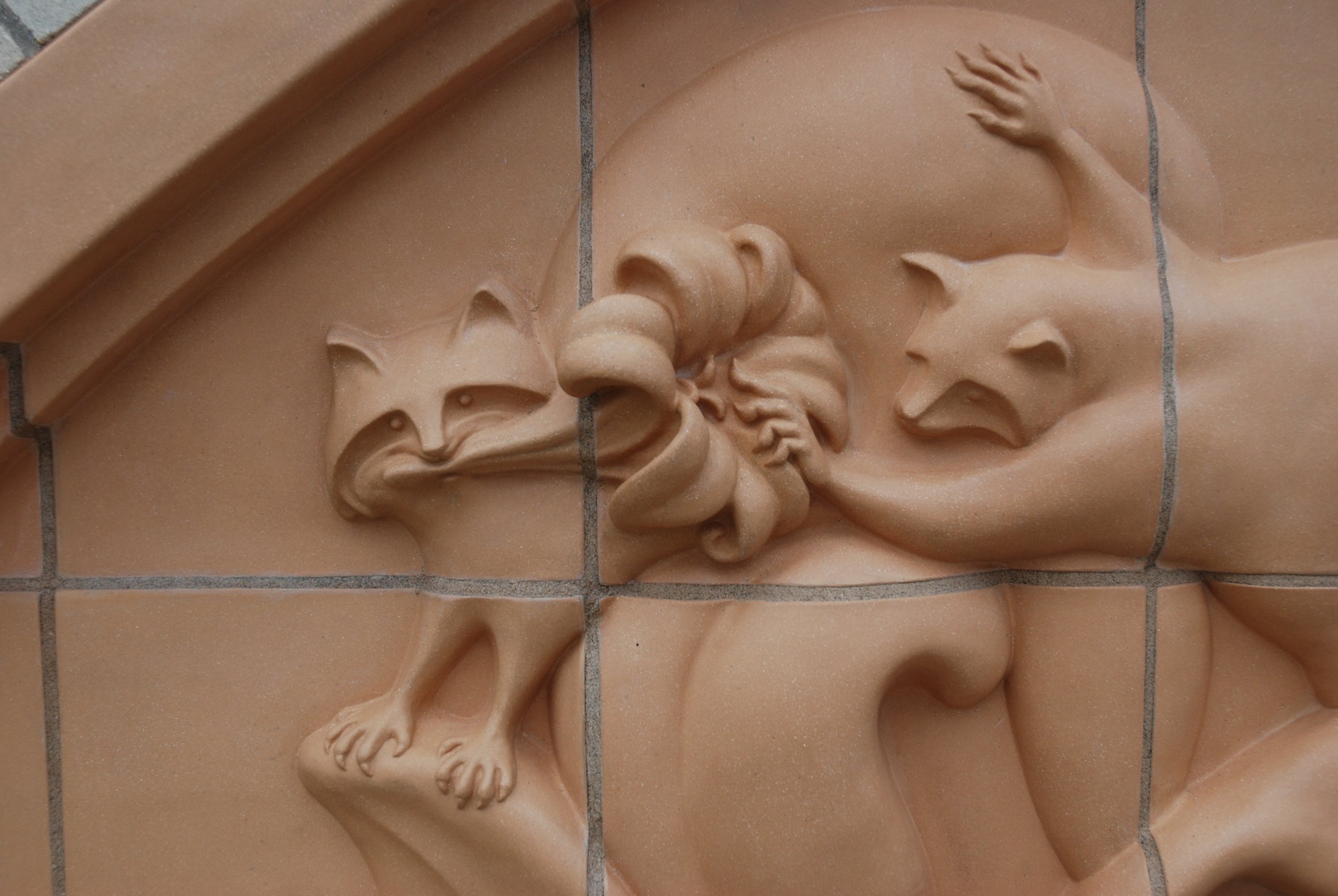 Large clay model, 1 duckling attempts to wake the bunny.