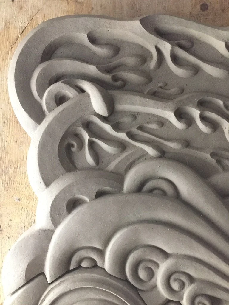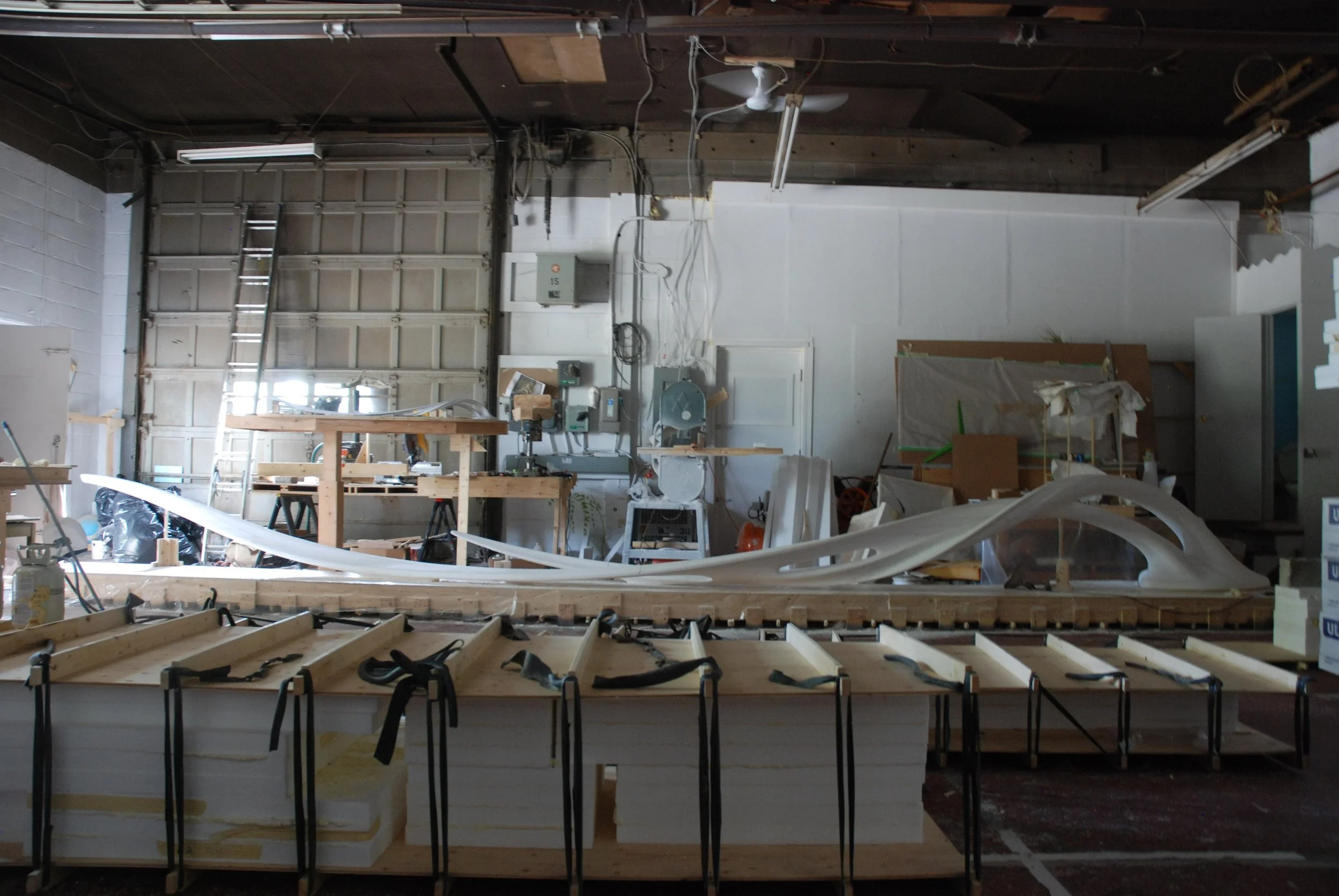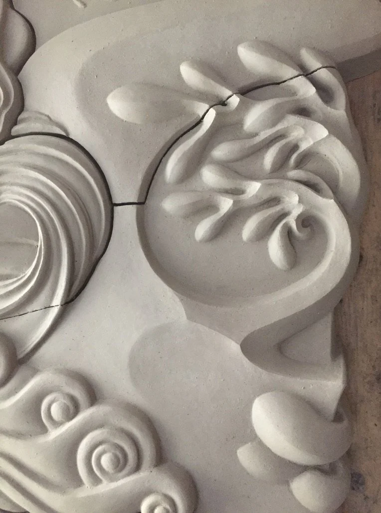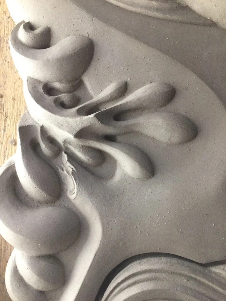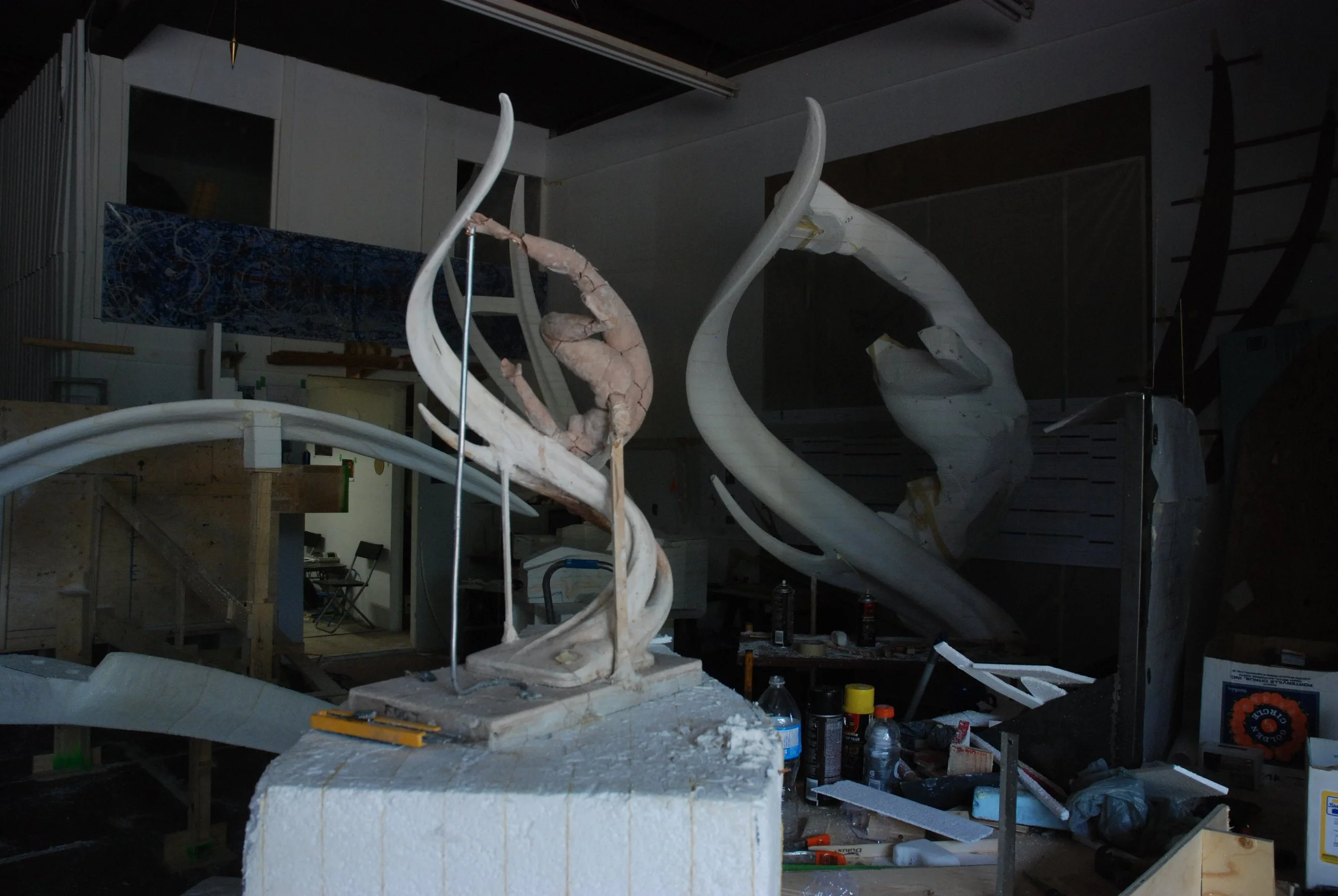 Abstracted reed water forms for Navigator, carved foam and plaster