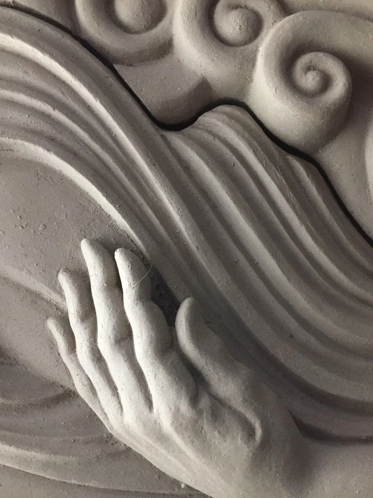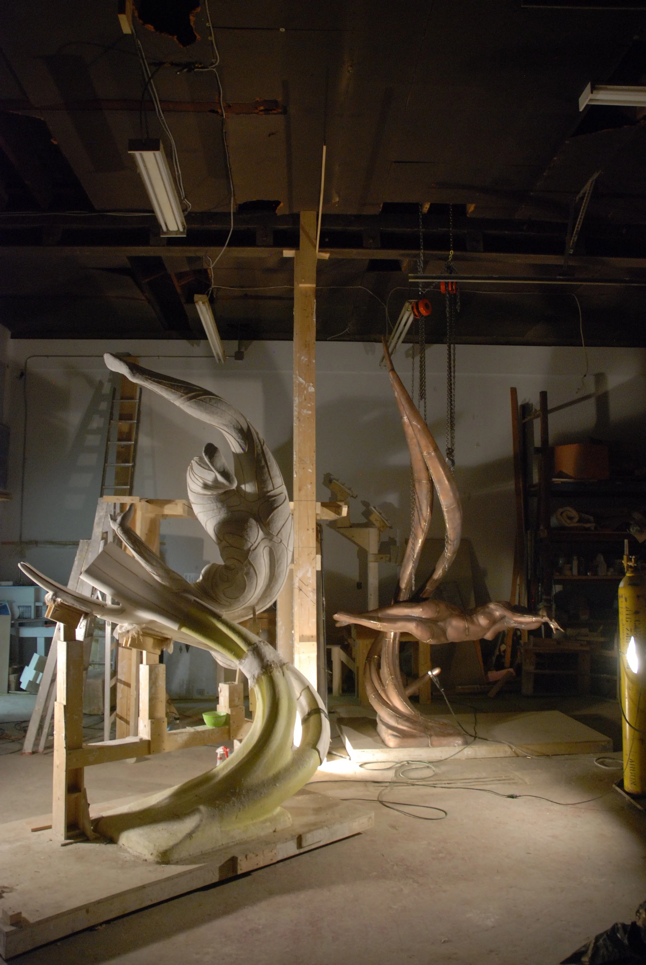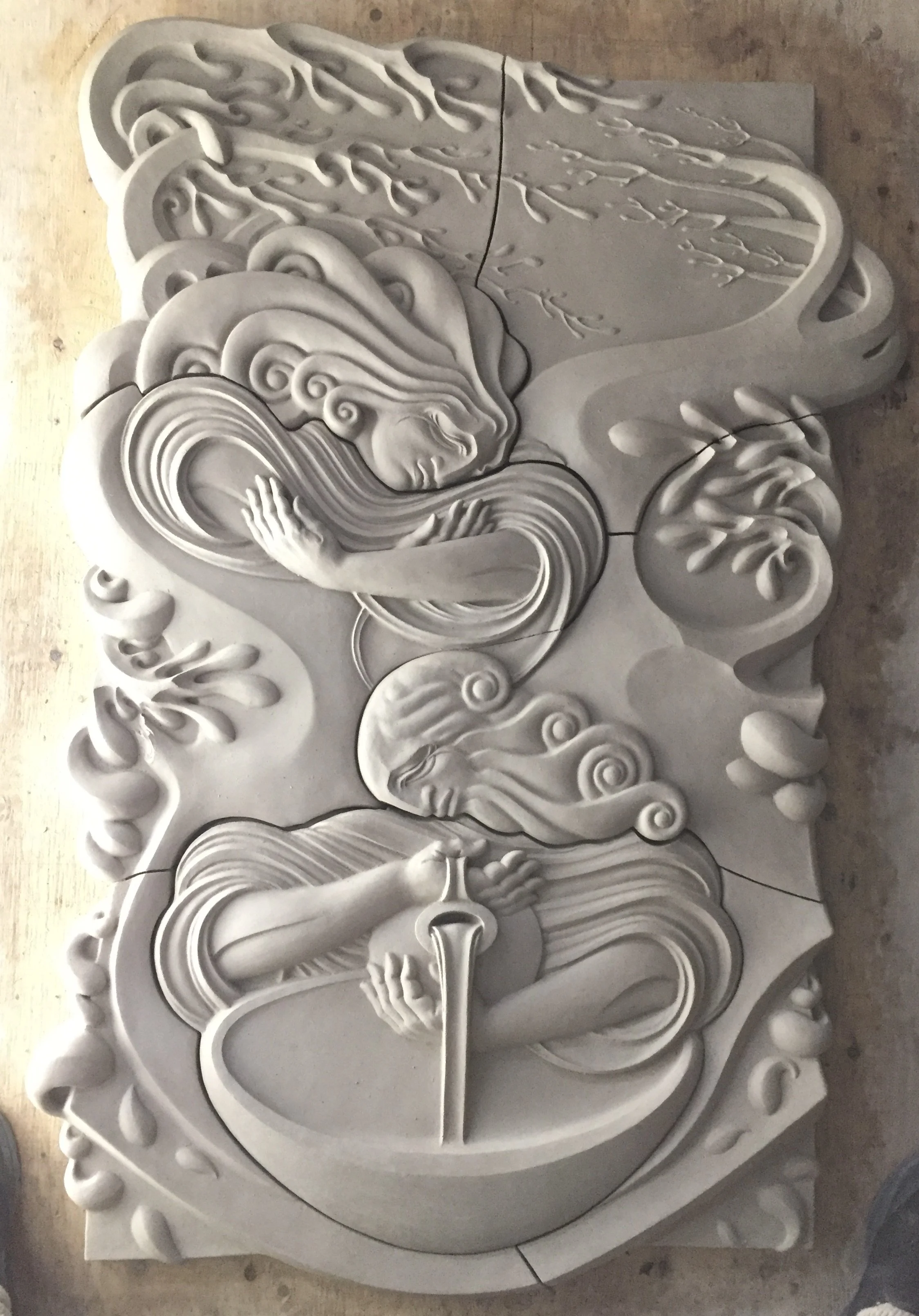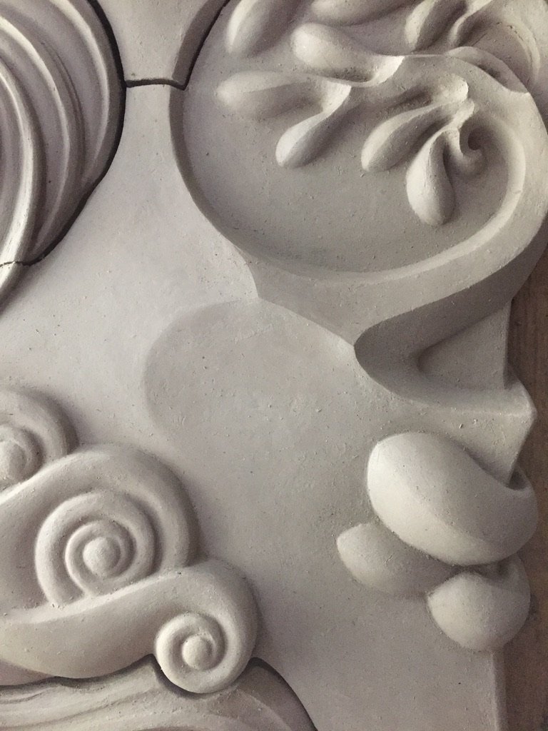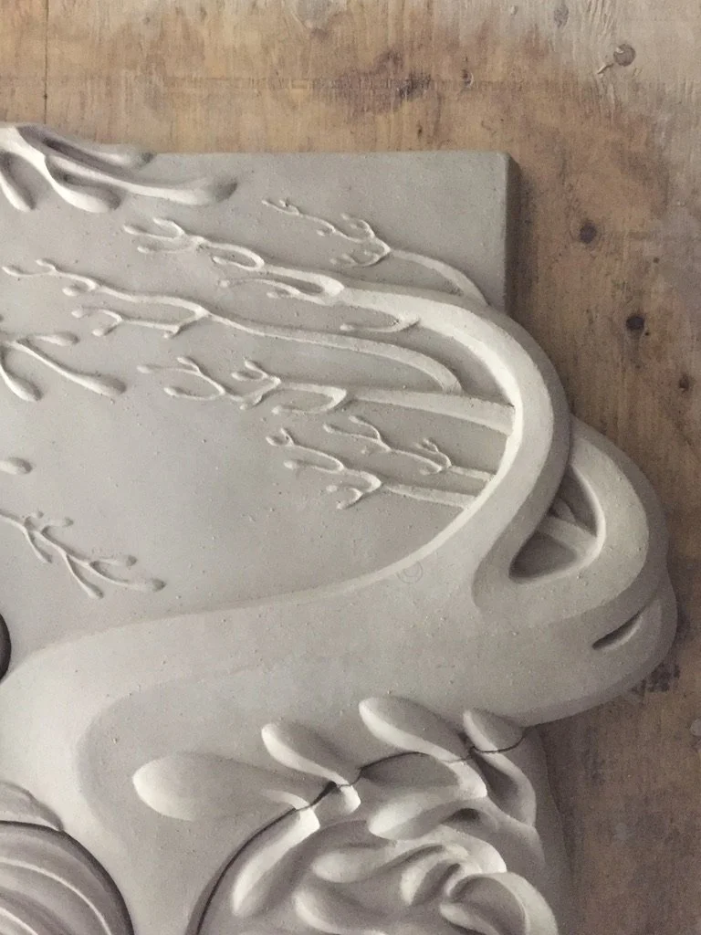 Abstracted reed water forms for Navigator, carved foam and plaster