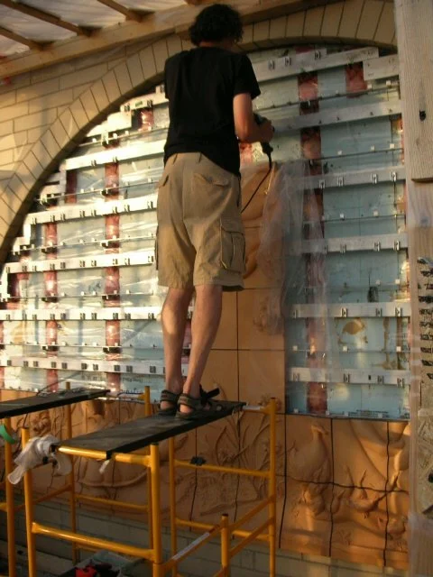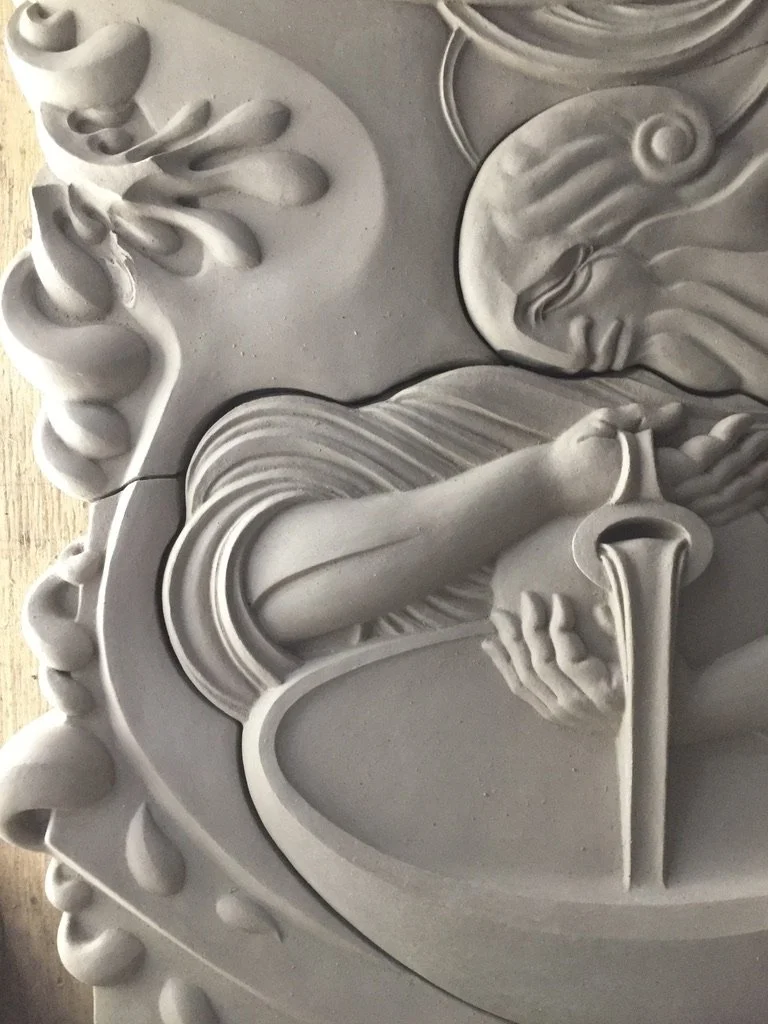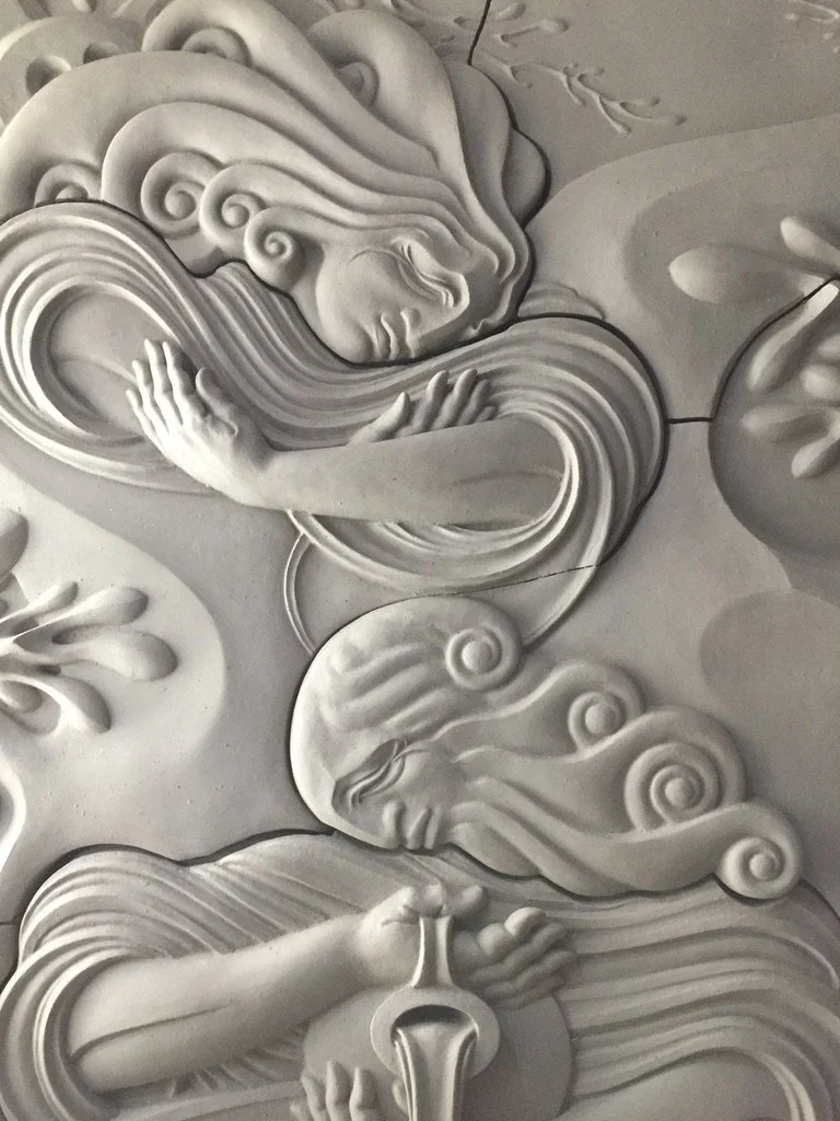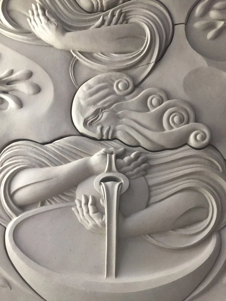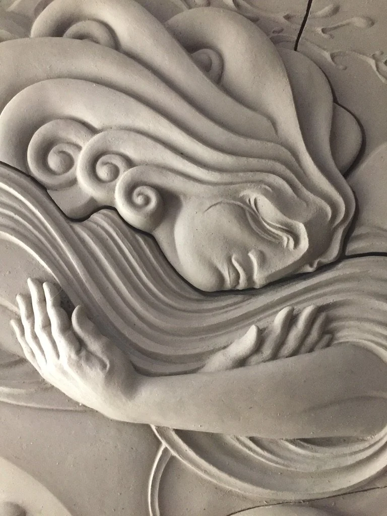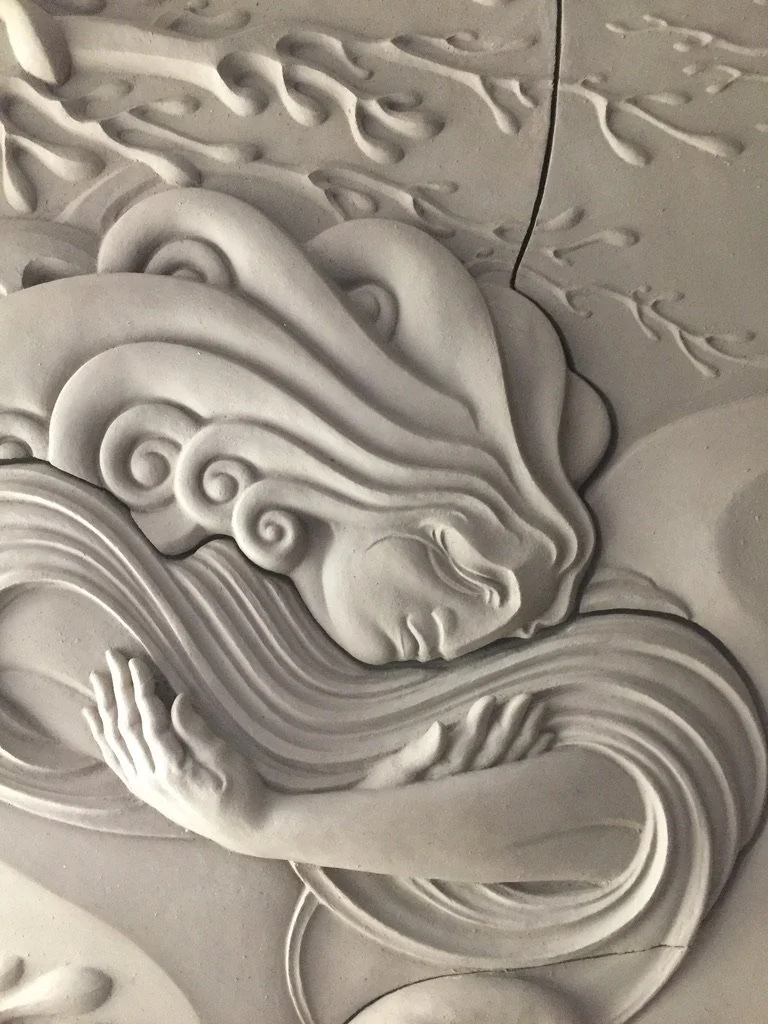 Abstracted reed water forms for Navigator, carved foam and plaster