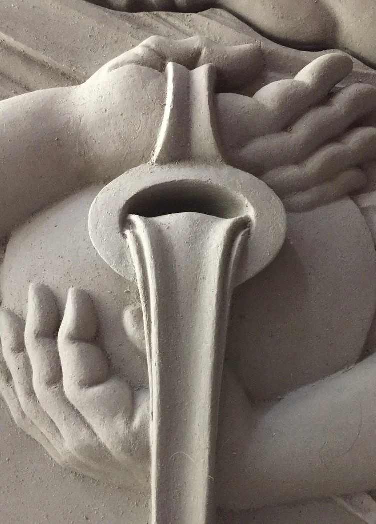 The abstracted fiddlehead, modelled in plaster served as the motif that inspired the forms and overall composition of the sculptures on site.