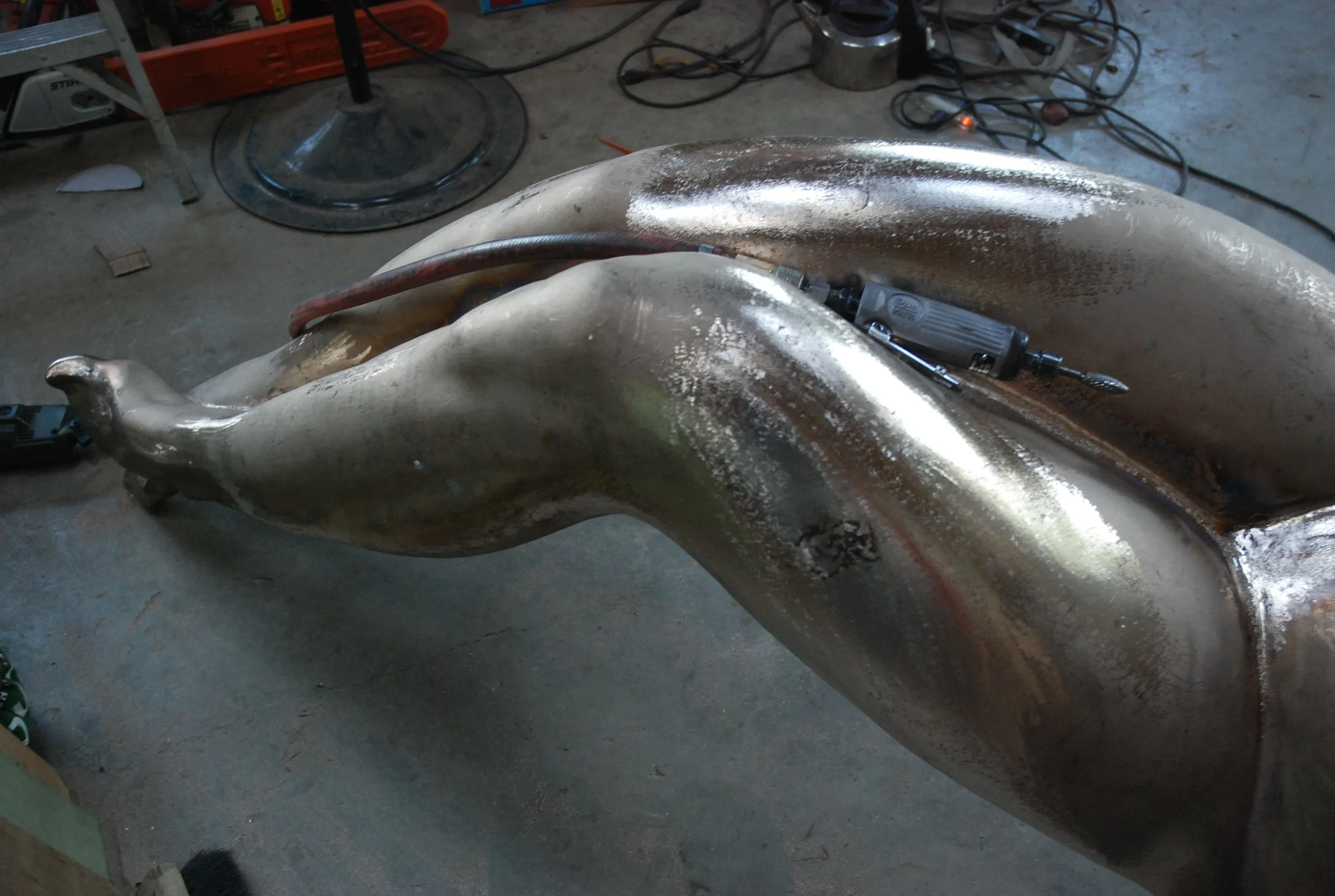 Chasing the welds with die grinder