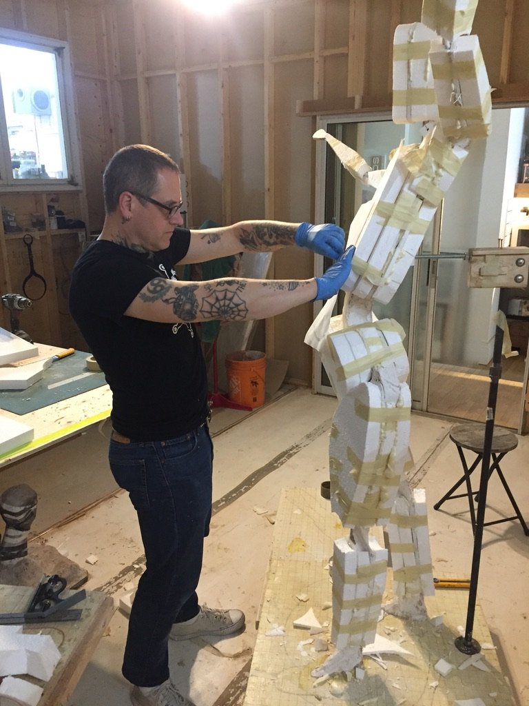 Navigator, carved foam, plaster and wax rails