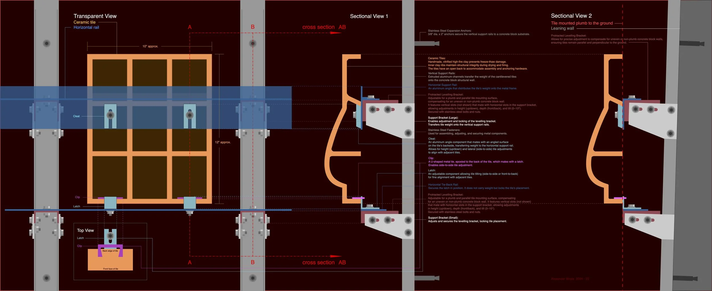 Diagram of support metal frame and tiles attachments.